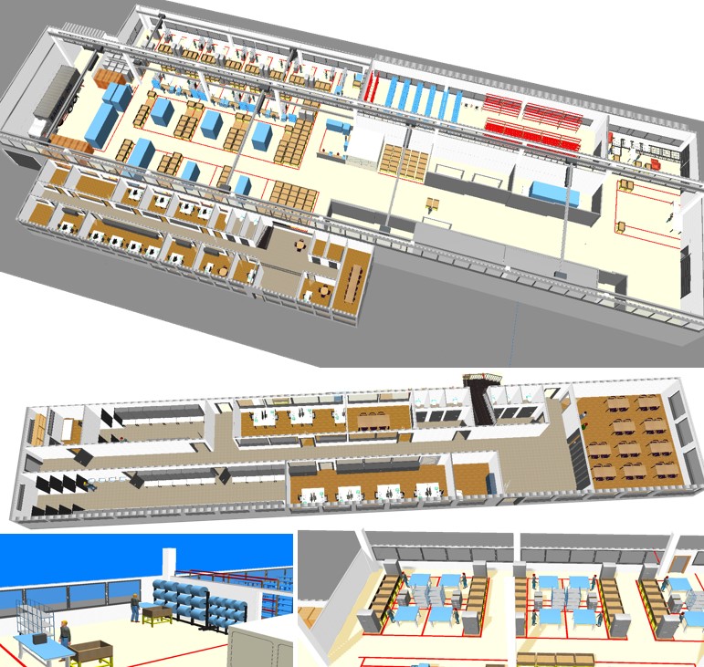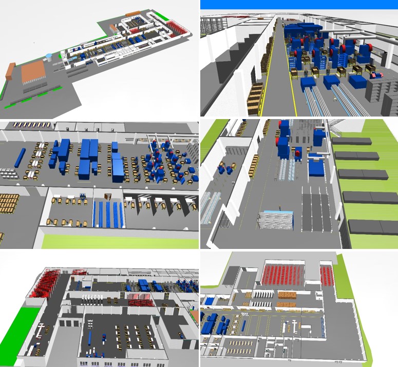V fazi podrobnega načrtovanja se **3D-načrtovanje** vse pogosteje uporablja za še natančnejšo in realističnejšo predstavitev tovarne. 3D-programska oprema omogoča virtualno modeliranje vseh področij tovarne. To omogoča celovito vizualizacijo razporeditve strojev, opreme in delovnih postaj, kar olajša prepoznavanje morebitnih težav ali ozkih grl. 3D-modeli ponujajo tudi možnost razumevanja in optimizacije kompleksnih odnosov med različnimi sistemi in strukturami že v zgodnji fazi.