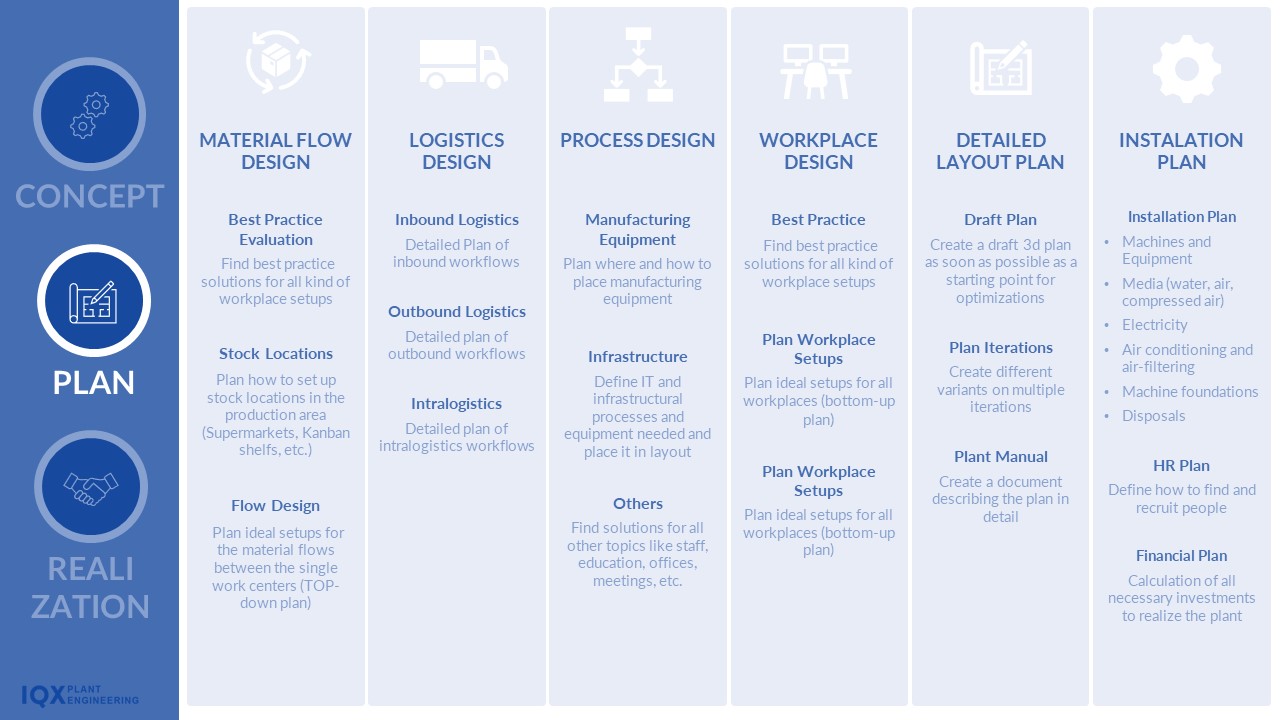 Na splošno je načrtovanje procesov hrbtenica načrtovanja tovarne, saj postavlja temelje za učinkovito in uspešno proizvodnjo izdelkov ter pomembno vpliva na celotno delovanje tovarne.